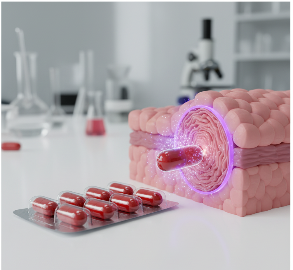 تتكوّن الكبسولة من مزيج بوليميري حيوي ذكي يحتوي على أنسجة نانوية قابلة للاندماج مع الخلايا المخاطية الداخلية.